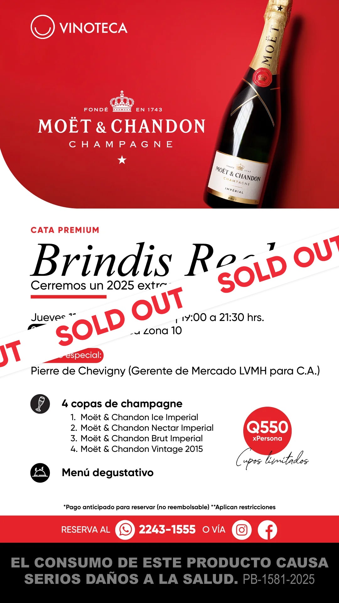 Celebra el cierre del 2025 con una cata premium de Moët & Chandon. 4 copas de champagne + menú degustativo. Cupos limitados. Jueves 11 de diciembre, 19:00–21:30 hrs, Salón Icono (Zona 10).