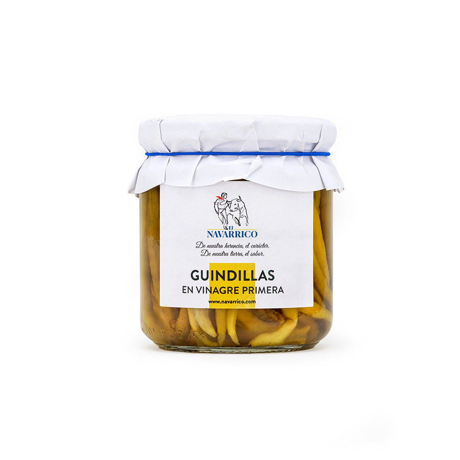 Ingredientes: agua, guindillas, vinagre de vino, sal, acidulante: ácido cítrico y antioxidante: ácido ascórbico. Contiene sulfitos.